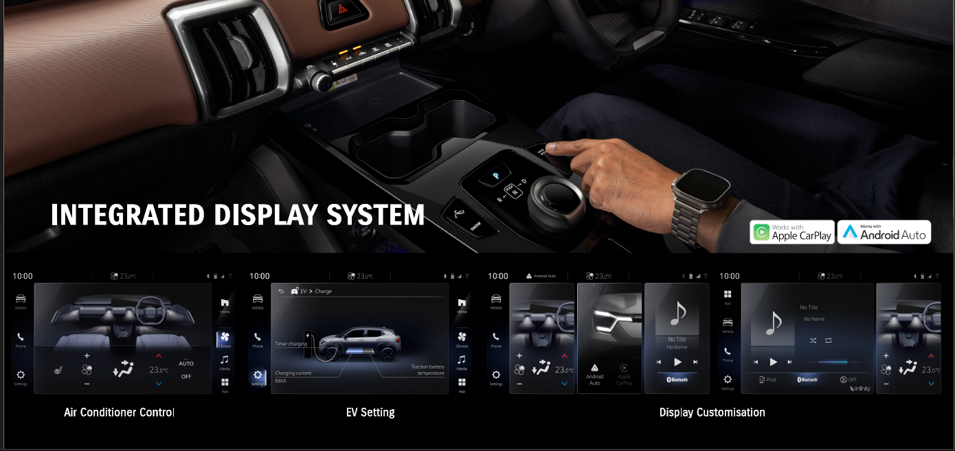 Arsitektur interiornya menyajikan nuansa premium berkat integrated display di balik lingkar kemudi squircle, serta desain jok kontemporer dalam ruang kabin ber-ambience light pancawarna.